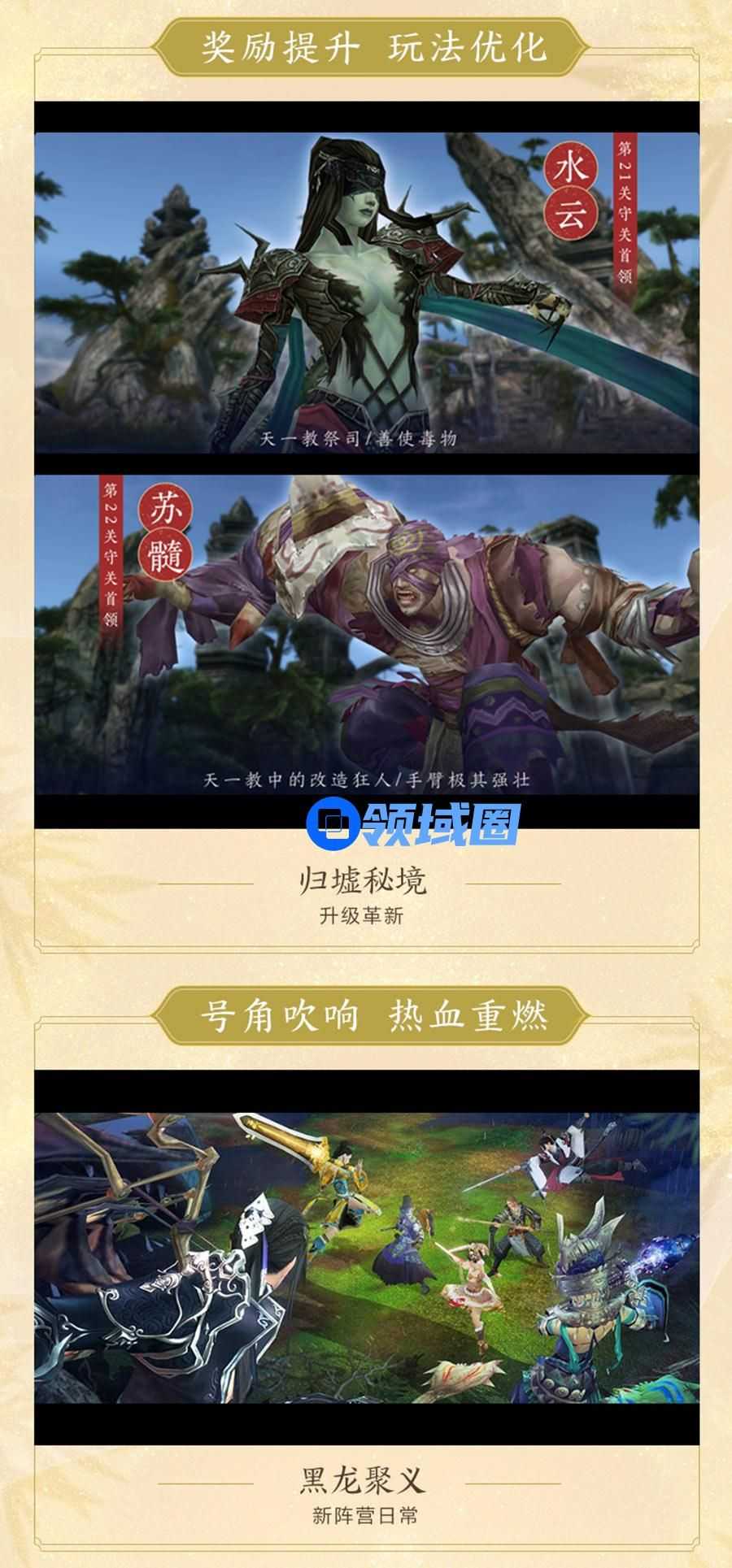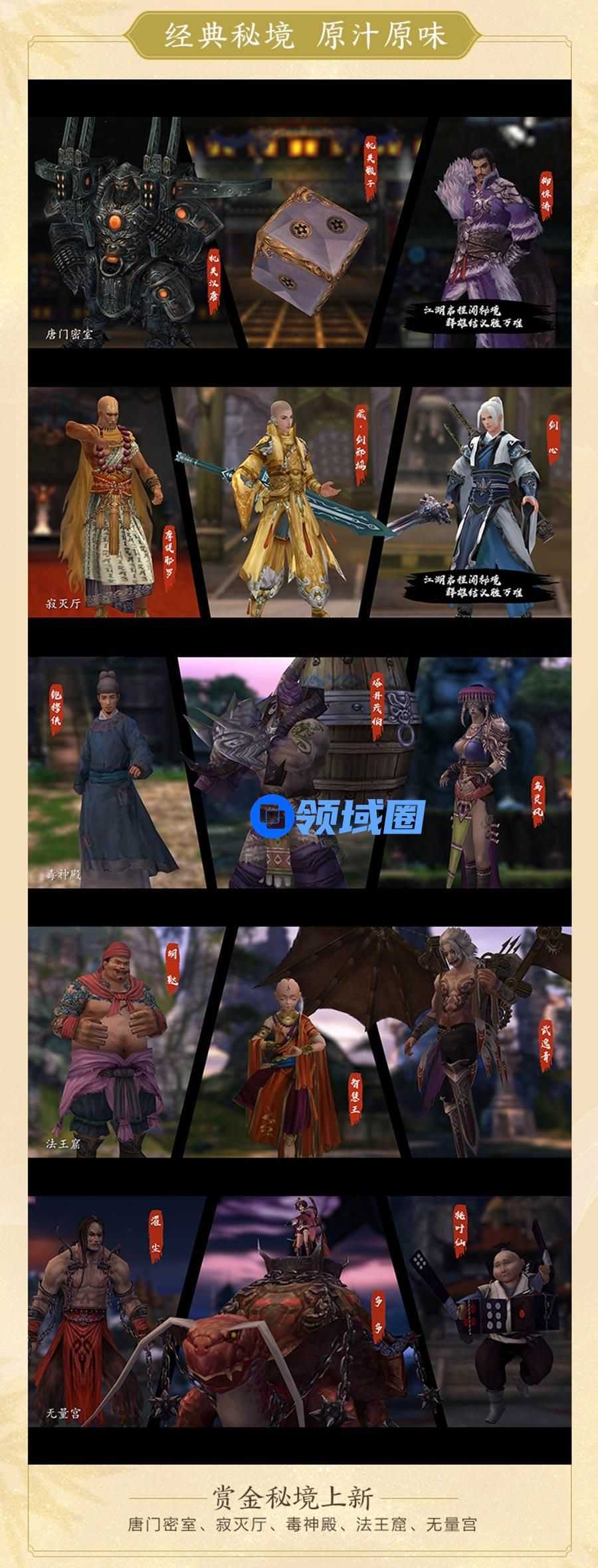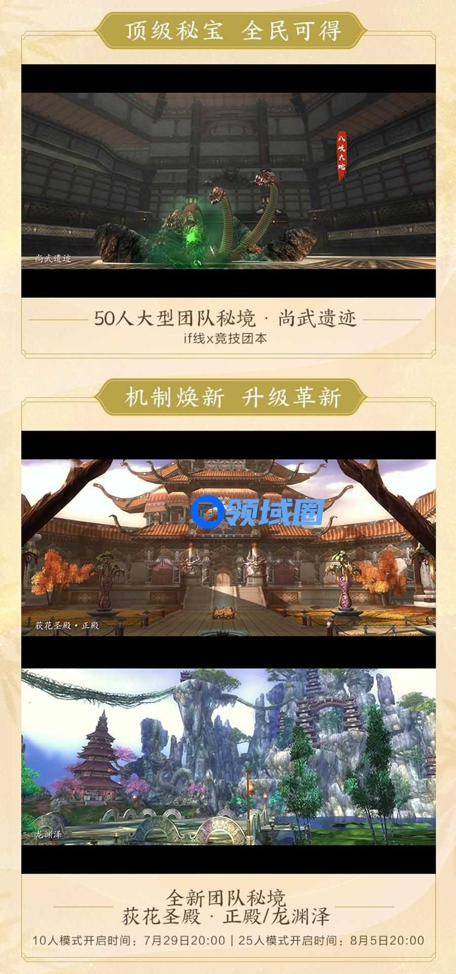 巨量新玩法来袭!5人赏金秘境、10/25人团队焕新秘境【荻花圣殿·正殿】【龙渊泽】首领待君挑战;经典阵营日常热血回归黑龙沼,全新独创50人大型竞技团队秘境【尚武遗迹】!点击下方视频抢先了解: