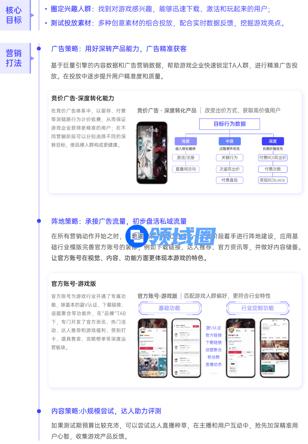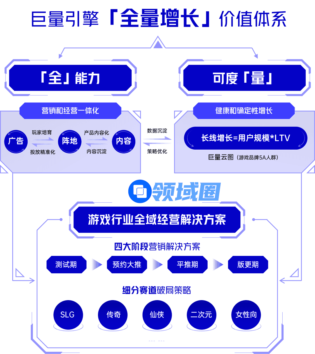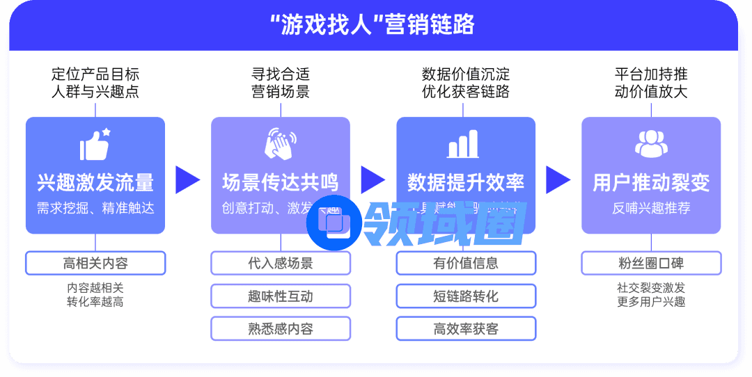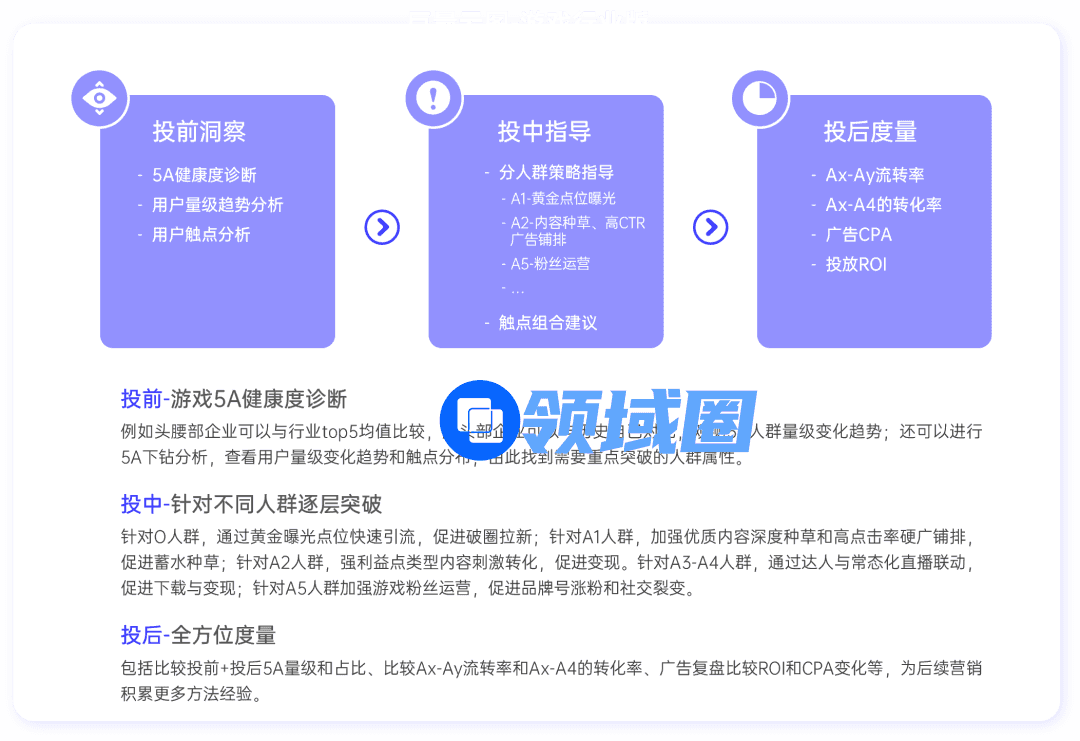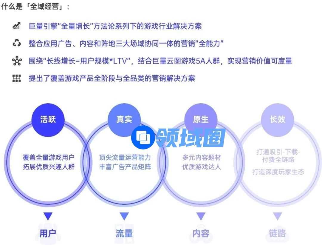 营销精准化:全域经营主张让营销回归内容,围绕“内容”做好整合营销,进而找到高价值人群,促进转化提效,实现游戏人群破圈与全渠道增效。