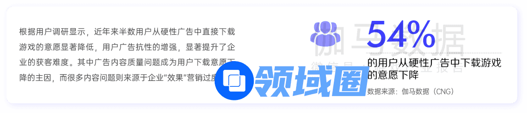 长期以来,竞价广告是游戏行业最主要的获客方式,并对此具有依赖性。但随着快消品、服装配饰等传统行业对互联网的渗透,游戏行业直接竞价策略承压。除了环境竞争,用户体验的持续下降也是当前亟待解决的问题。