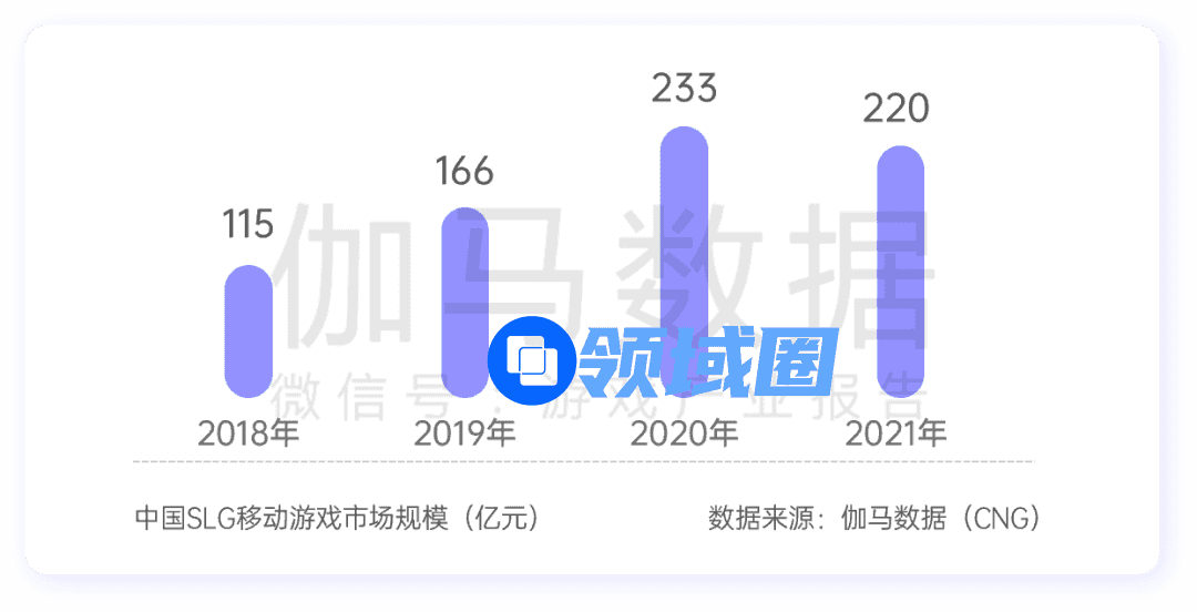 根据伽马数据,SLG游戏市场规模超过220亿元。但从2021年起,SLG移动游戏市场已进入增长瓶颈。一方面现阶段市场头部产品数量已较多,增量用户挖掘难,同时SLG产品也普遍呈现出用户喜好依赖,对单款游戏的忠诚度和精力投入度更高,说服老用户尝试一款新的SLG游戏是件不容易的事,导致新品入局难度提升。