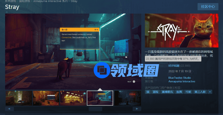 其实在《Stray》正式发售的几天前,茶馆就预感到这款以猫猫为主题的“赛博朋克”式解密游戏将会是今年的又一个爆款。