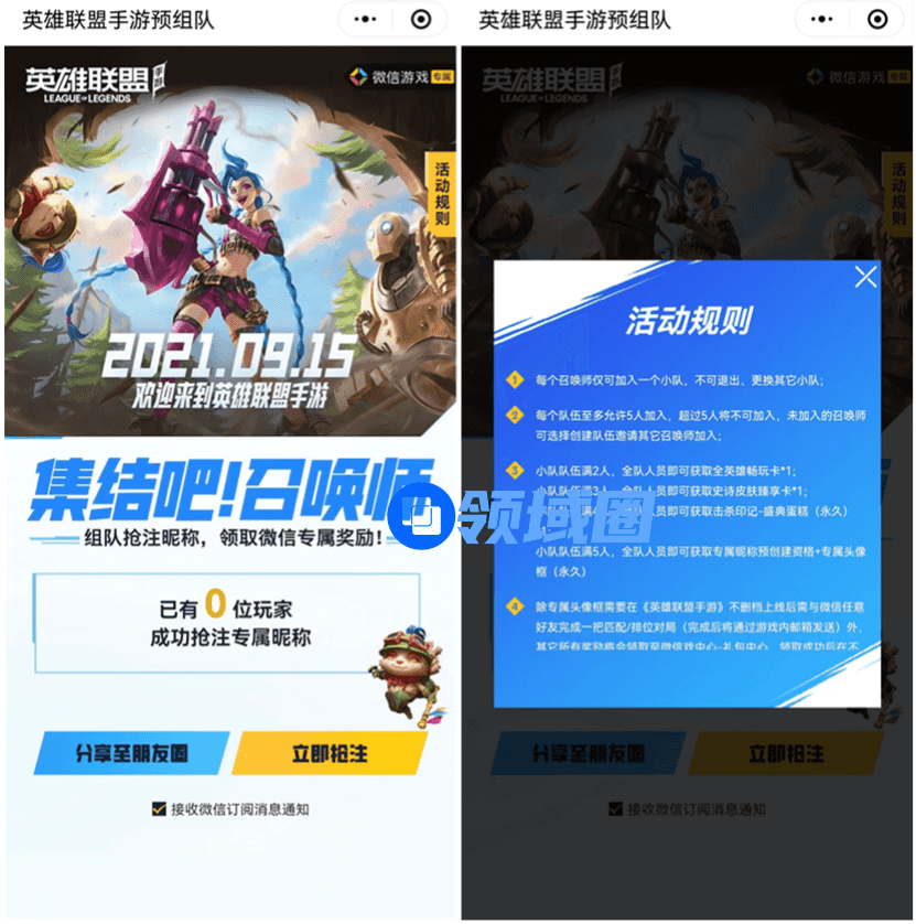 值得注意的是,除了《英雄联盟手游 星之守护传说》这款小游戏之外,腾讯还上线了多款带有“英雄联盟手游”关键字的小游戏,比如《英雄联盟手游预组队》《英雄联盟手游 元素崛起》,而后两款小游戏的主要内容是《英雄联盟手游》相关活动的引导。可见,通过小游戏的方式,充分利用微信平台的用户基数和社交属性,加速游戏的扩量和转化正在成为腾讯的新尝试。