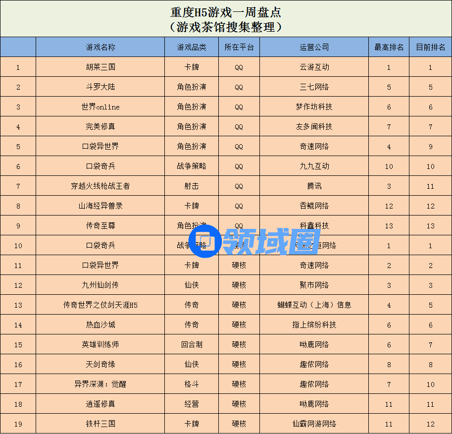 重度H5游戏:《胡莱三国》稳坐榜首,《口袋奇兵》双榜有名