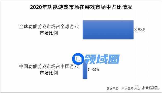 截至 2020 年,中国功能游戏市场之于整个游戏市场的占比仅为 0.34%,而全球整体水平的占比为 3.83%;用户占比方面,我国 2020 年用户规模为 6.4 亿,功能游戏仅占 4%;企业方面,中国上市游戏企业里仅有 1.52% 有布局功能游戏。
