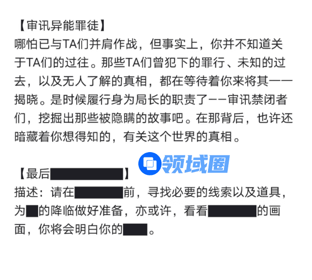 在这里,怪谈不仅是一种氛围或世界观呈现,也会影响信息的呈现方式,如涂有黑字的档案卡,又或者是《无期迷途》中在简介中就有的新怪谈档案风格。