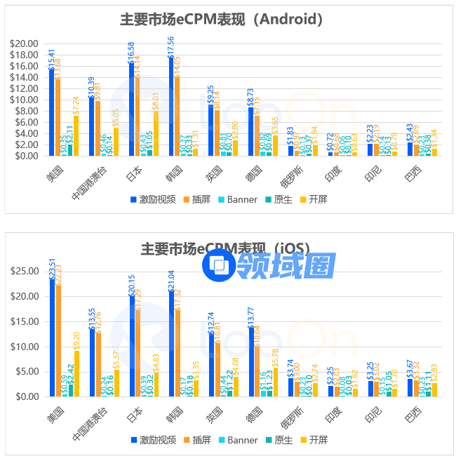 全球篇针对美国、中国港澳台、日本、韩国、英国、德国、俄罗斯、印度、印尼、巴西市场手游广告变现表现进行同比环比分析,不含中国内地市场数据表现。
