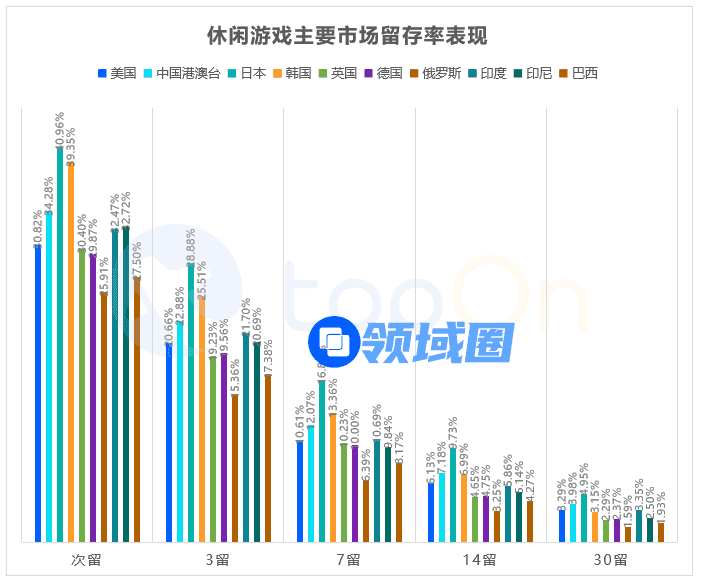 日韩市场整体对休闲游戏接受度高,日本次留超过韩国