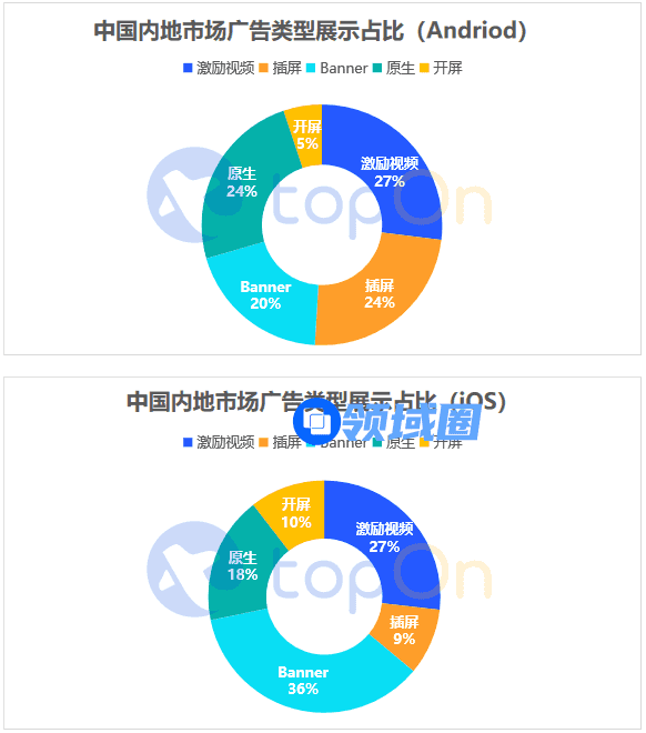 在整体广告收益都下降的情况下,由于激励视频的用户体验以及eCPM表现较好,开发者更倾向于设计激励视频场景,因而双端激励视频的展示占比和收益占比均较2021年提升明显。需要注意的是,激励视频虽然广告效果较好,但并非“万能解法”,开发者仍需要根据游戏属性和受众特点合理配置广告位。