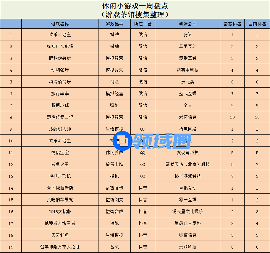 休闲新游周报每周统计微信小游戏、QQ小游戏、抖音小游戏、硬核小游戏以及App Store和Google Play上的新游爆款,并按照分类制作表格,将游戏排名情况等信息公布,希望给到行业同侪帮助。