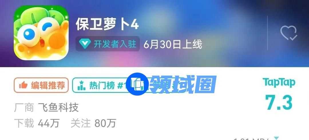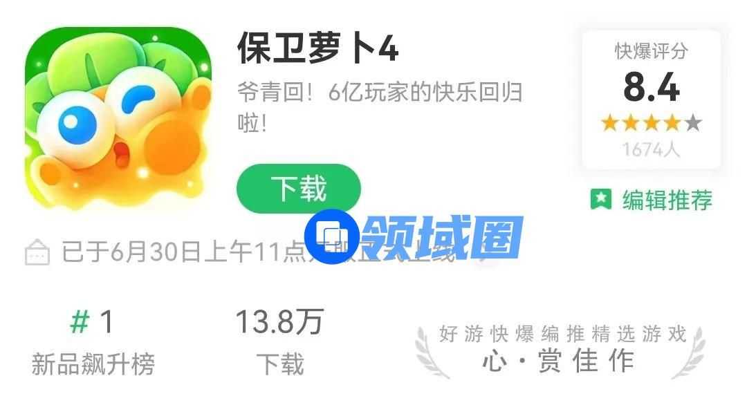 其中《保卫萝卜4》在众多玩家的期待下,自6月30日正式上线后,迅速拿下了TapTap热门榜第一、好游快爆新品飙升榜第一的好成绩。