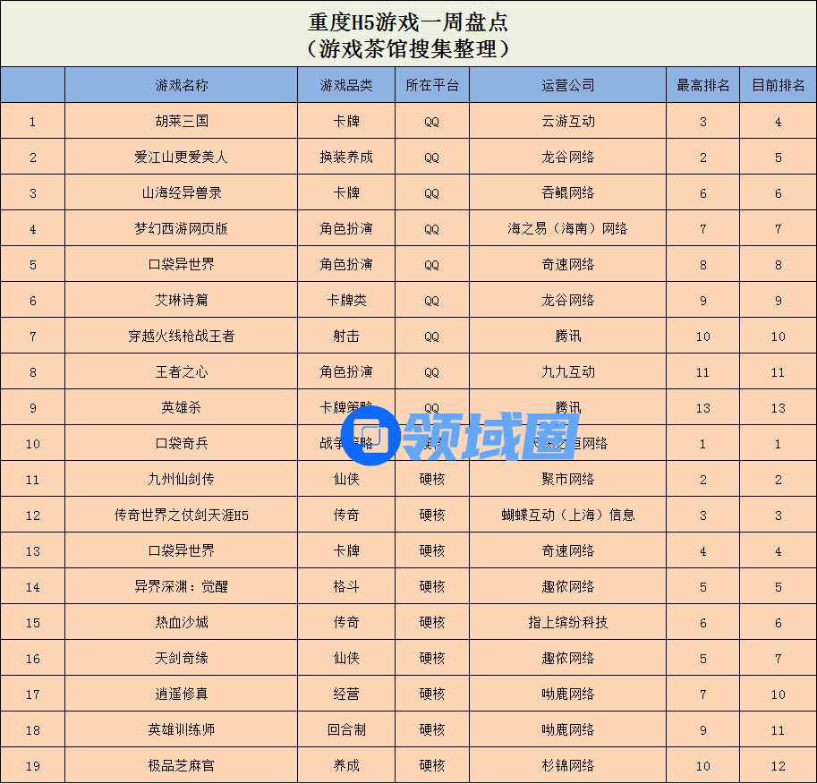 重度H5游戏:《胡莱三国》登顶,《口袋奇兵》稳霸魁首