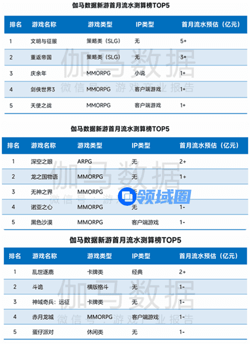 据伽马数据估算,今年1-5月首月流水过两亿的新游只有《文明与征服》(5亿+)、《重返帝国》(3亿+)、《深空之眼》(2亿+)与《乱世逐鹿》(2亿+)。对比往年,今年新游市场表现滑坡不少。去年还有《哈利波特:魔法觉醒》《英雄联盟手游》这样月流水破10亿的大爆款,今年目前来看难有新游能达到这水平。