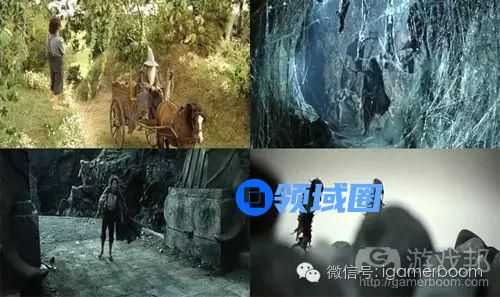 基本形状的反差使我们得以将《指环王》的故事用基本形状抽象为视觉故事,即圆形的Frodo和Samwise离开他们圆形的家踏上危险的、三角形的旅程,最后又回到了安全的家。
