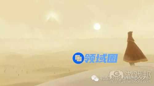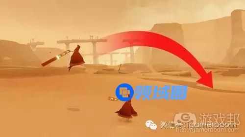 在《Journey》的开头关卡,当玩家按下跳跃键时,角色的跳跃会呈现一道优雅的弧线(如上图所示)。