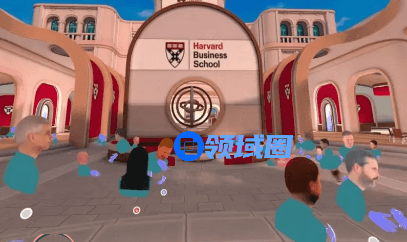 在活动中,这些哈佛毕业生佩戴了预装Mesmerise应用的Quest头显。到达派对现场后,古拉蒂教授向他们致意,并将他们分成两个小组(每组45人)。随后,他们就进入Mesmerise的数字广场,三五成群地聊天叙旧。