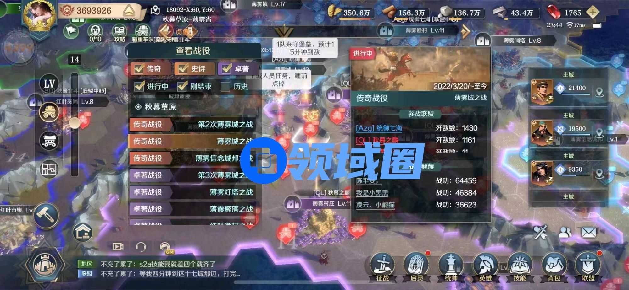 而在S2赛季的143区中,原本也是二分天下之局。其中一方的顶级大盟叫做统御七海,其辖下有战争之王,凤凰,征服,北定中原,天主之盾等等大盟,盟内高战数不胜数,其中更有十位顶级高战,在战役中往往能够发挥出绝对的实力。但敌对的另一大盟也不是吃素的,由热血高校,龙腾,雄鹿,烟雨几个大盟组成的同盟(下面称之为A盟),在几大联盟的同仇敌忾下,同样也能跟统御七海打得有来有回。