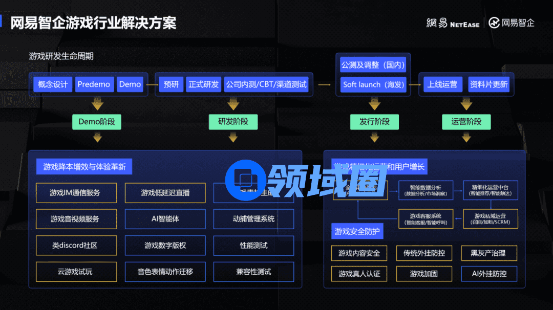 可见涵盖游戏研运全周期的一站式服务内容、丰富的游戏企业服务经验、频受市场验证的解决方案、前沿的专业技术和部署全球的服务支持,让网易智企正在成为越来越多游戏企业提升产品安全性、交互性和运营效率的首要选择。