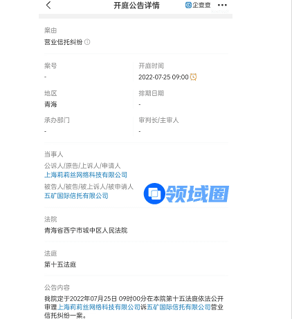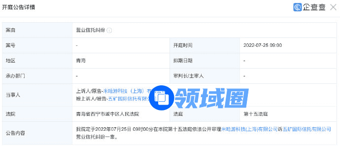 近日,青海省西宁市城中区人民法院定于2022年07月25日09时00分在本院第十五法庭依法公开审理米哈游科技(上海)有限公司、上海莉莉丝网络科技有限公司诉五矿国际信托有限公司“营业信托纠纷”一案引起了外界的广泛关注,网传这次起诉可能与近期五矿信托暴雷的鼎兴系列1号-15号产品有关,总规模超过23亿元。