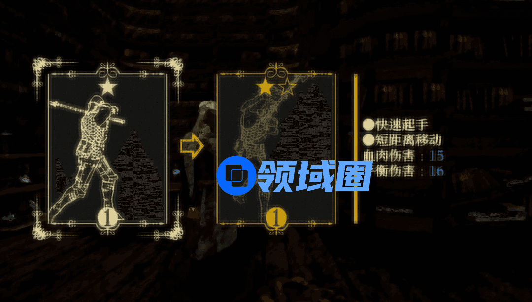 除此之外《死亡教堂》的动作派生也是一个具有拓展的系统,正常的攻击派生分为第一次攻击、第二次攻击和第三次攻击(下文简称123),在每次击败敌人后就能获得一个随机123的新攻击派生(后文简称招式),并且部分的派生还会施加一些额外的增益效果,如果能组合到一套强力的招式,那对于战斗的风格转化也是有着巨大的变动。