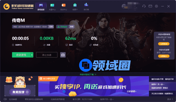 1. 打开野豹加速器,搜索【传奇M】开启一键加速;加速游戏的同时也会加速kakaogames官网