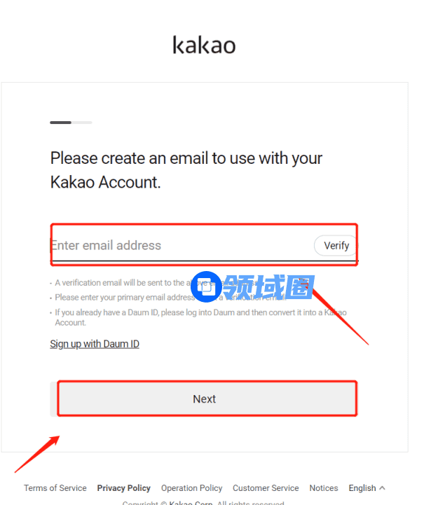 2. 前往Kakao官网进行账号注册 ,按照下图进行操作即可