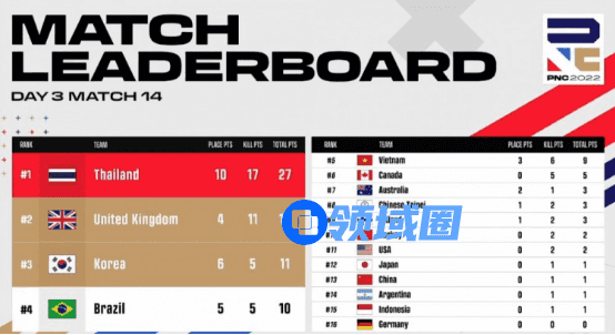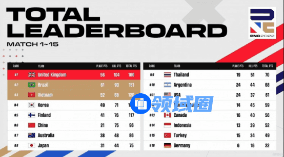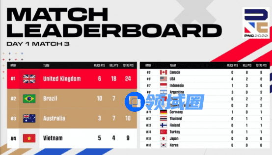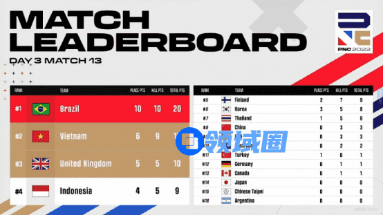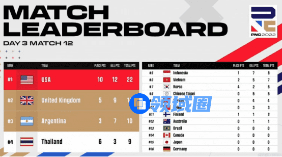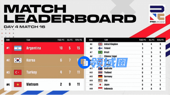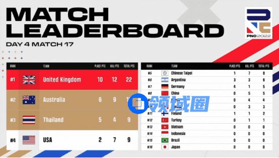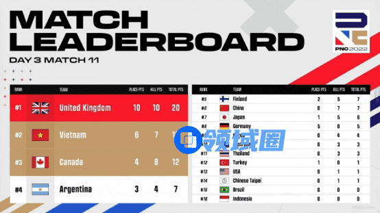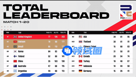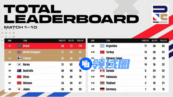 【Krafton Inc.旗下PUBG工作室】英勇竞生,绝地六势!为期四天的2022PNC全明星赛已落下帷幕。经过全球各赛区16支明星代表队的激烈角逐,2022PNC全明星赛冠军桂冠花落英国队(即代表队,后文同)——以总分203分、126个淘汰数领跑积分榜;越南队以总分177分、99个淘汰数拿到亚军;巴西队则以稍弱的地区分,结合总分177分、112个淘汰数,拿到季军;中国大陆队在最后一天单局拿下八个淘汰数,成功吃鸡展现英勇不屈的精神,最终拿到本次比赛第六名;中国台湾队则是排在第十一名的位置。下面让我们来回顾一下本周的精彩战况: