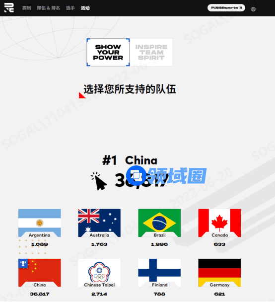 在所有人的努力下,本活动的投票结果已出炉,中国大陆队以36,817票获得本活动的第一名,向世界展示着鲜艳的五星红旗!