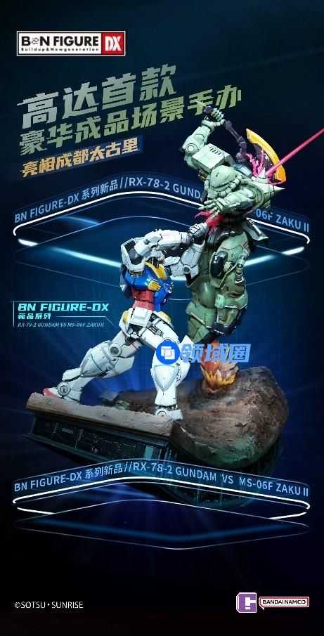此外,本次活动中潮玩部也带来了最新力作。高达史上首个豪华完成品场景手办,【BN FIGURE-DX 系列新品 RX-78-2 GUNDAM VS MS-006F ZAKUⅡ】由 GUNDAM ASTRAY (异端高达),知名设计师 「阿久津润一」原创设计,再现复杂原型与精细造型。