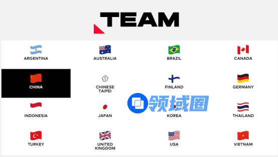 16个代表队分别来自:中国大陆赛区、中国台湾赛区、阿根廷赛区、澳大利亚赛区、巴西赛区、加拿大赛区、芬兰赛区、德国赛区、印度尼西亚赛区、日本赛区、韩国赛区、泰国赛区、土耳其赛区、英国赛区、美国赛区、越南赛区。