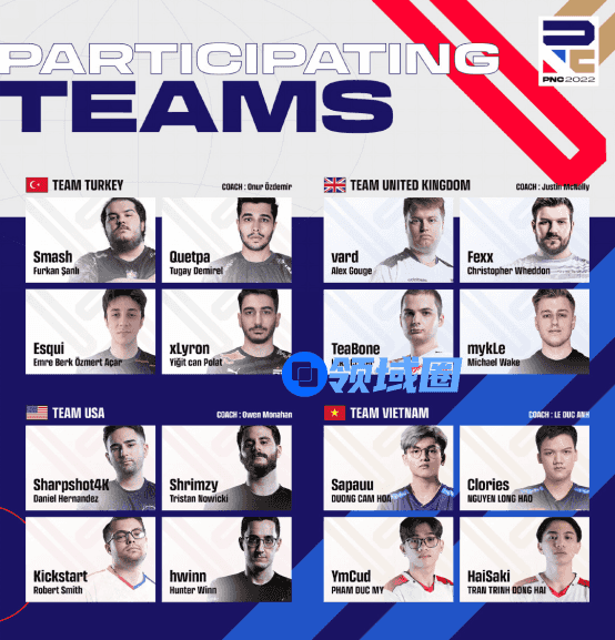 中国大陆赛区出战的四名选手当中,有两名来自2022春季赛冠军队伍NH战队,一个是今年春季赛排名第一的伤害王、包揽MVP和战神称号的ZpYan1选手,另一个则是有着鸡尼斯记录——个人累计淘汰【900人】的Mming选手;另外,4AM战队的xxxLu选手作为新生代的力量,有着强大的心脏,擅长逆风带领队伍拿下比赛;而Aixleft选手在刚刚结束的PCS6东亚洲际赛中带领队伍登顶冠军宝座,又拿下赛事MVP和淘汰王!两支冠军队伍选手外加超新星选手又将擦出怎样的火花?让我们拭目以待!