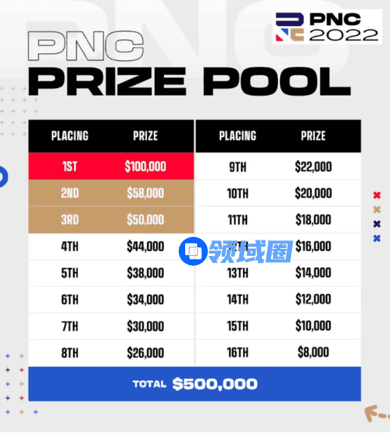 奖金方面,本次2022PNC全明星赛的基础奖金池为50万美元!夺得冠亚季军的队伍除了拥有傲人的头衔之外,还能分得基础奖金池里的高额奖金:冠军队伍将获得100,000美元!亚军队伍将获得58,000美元!季军将获得50,000美元!另外总奖金池也将通过冠军竞猜活动(Pick'em Challenge)不断累加,并根据比赛的最终排名来进行分配。