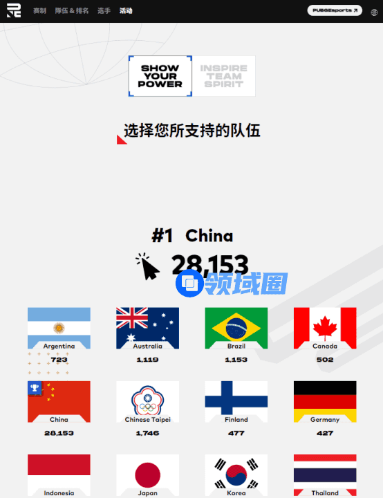 进入活动主页,只需要轻轻点击赛区旗帜,即可让你支持的赛区队伍获得宝贵的一票。本活动为实时计票,得票最高赛区将优先在活动页展示。