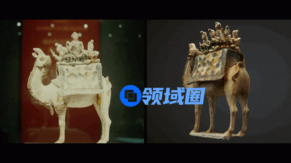 珍贵文物三彩骆驼载伎乐俑的照扫对比效果