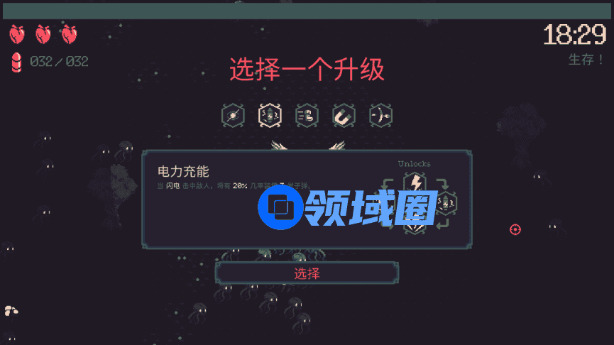 值得一提的是,尽管看上去和《吸血鬼幸存者》很相似,不过《黎明前20分钟》显然喜欢反其道而为之,原先的生存计时变成了限时生存。不得不说这个改动非常巧妙,玩家需要在20分钟内想办法在如潮水般的怪物攻击下存活下来,而一旦成功,真的有一种逃出生天的成就感和刺激感。