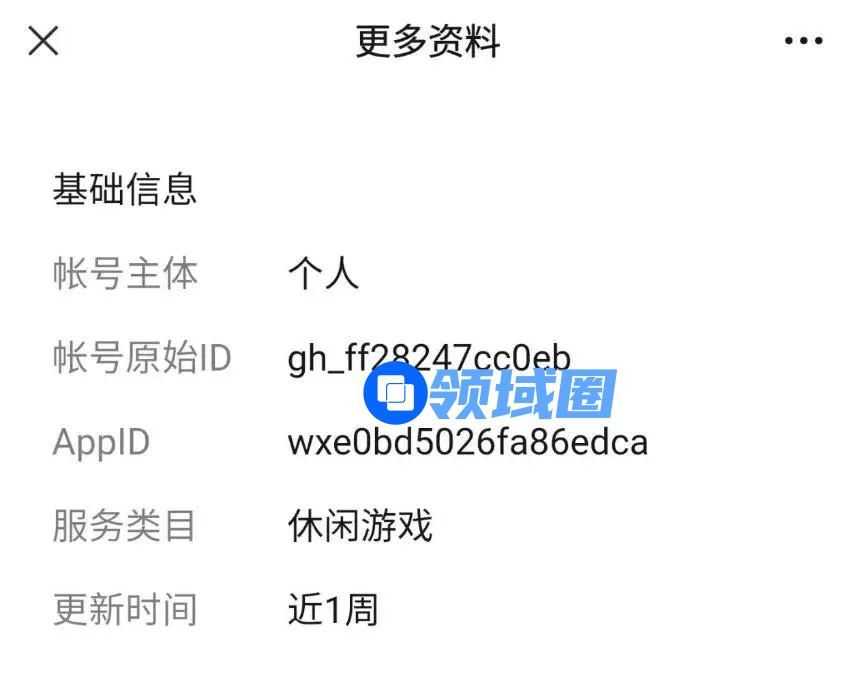 在这款产品的资料页面上,账号主体显示的是“个人”,更新时间为近一周,除了账号原始ID和AppID之外,我再也查不到关于这位开发者的更多内容。