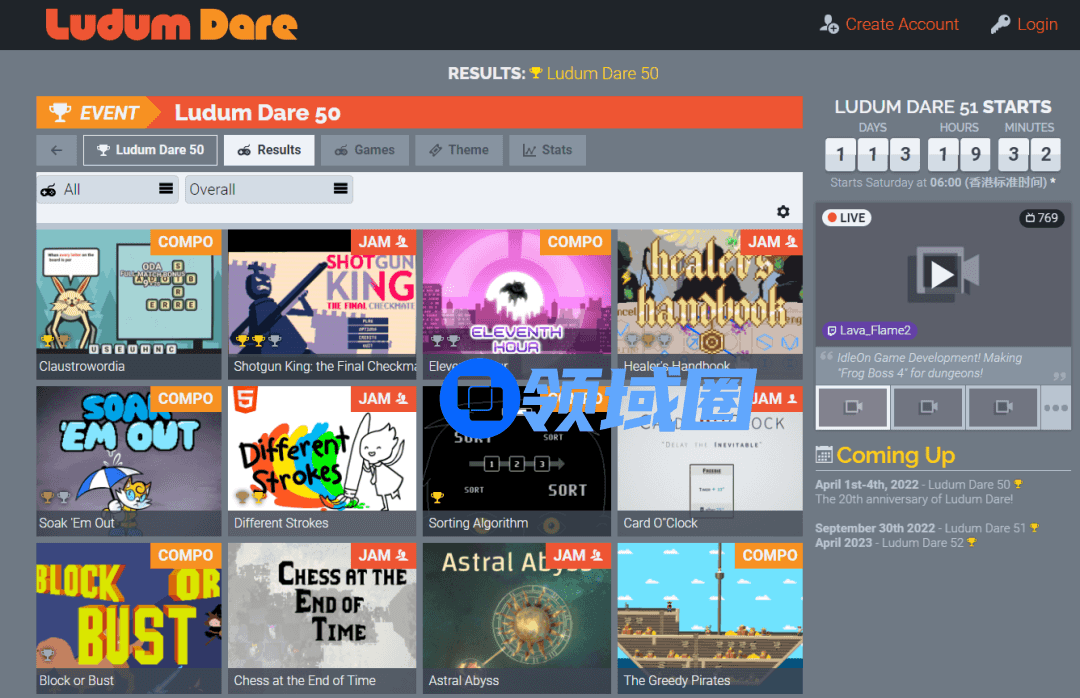 Ludum Dare游戏开发竞赛(下文称LD)的首次比赛在2002年的四月,LD的创立人Geoff Howland和Mike Kasprzak突然奇想到可以来一场游戏开发竞速,他们想要在24小时内开发一款游戏。第一次只有20多位开发者参加比赛,随后他们也意识到24小时很难去实现许多的东西,所以在2007年将这个规则改成了48小时,有在后面推出了时间更长的Jam组。在今天LD已经成为了全世界最火最大的游戏开发竞赛,LD也会在每年四月、八月和十二月举行,《霰弹国王》诞生于今年四月举办LD50。