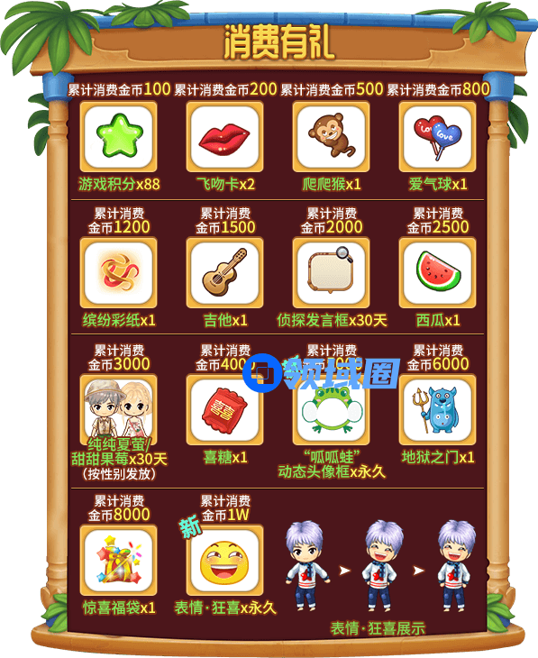 活动期间,根据您消费金币的数量,获得不同奖励!