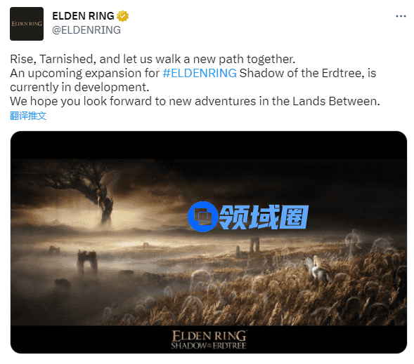 近日,期待已久的《艾尔登法环》最新DLC“黄金树之影”正式一周年之际官宣,官方在推特上配文称:“崛起,玷污,让我们走上一条新的道路。《艾尔登法环》最新DLC‘黄金树之影’正在开发中,我们衷心期待您在狭间之地的新冒险”。