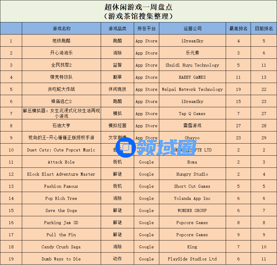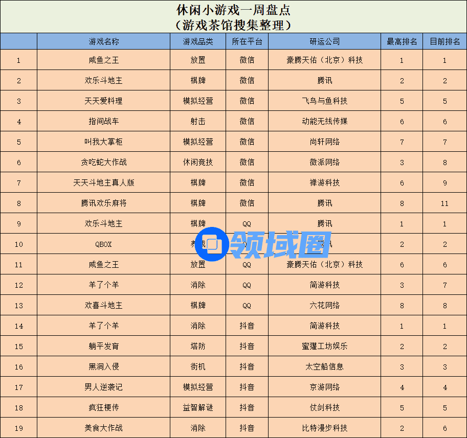 休闲新游周报每周统计微信小游戏、QQ小游戏、抖音小游戏、硬核小游戏以及App Store和Google Play上的新游爆款,并按照分类制作表格,将游戏排名情况等信息公布,希望给到行业同侪帮助。