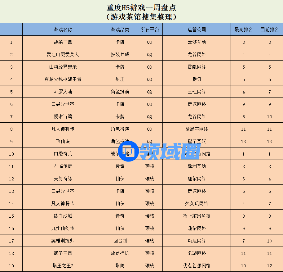 重度游戏方面,QQ小游戏榜单中,云游互动旗下的《胡莱三国》稳坐QQ硬核榜首,《爱江山更爱美人》排名上升,重回QQ畅销榜TOP5;硬核小游戏中,战争策略游戏《口袋奇兵》稳坐魁首,来自绿洲互动的传奇游戏《君临传奇》又一周稳坐硬核热门榜TOP5。