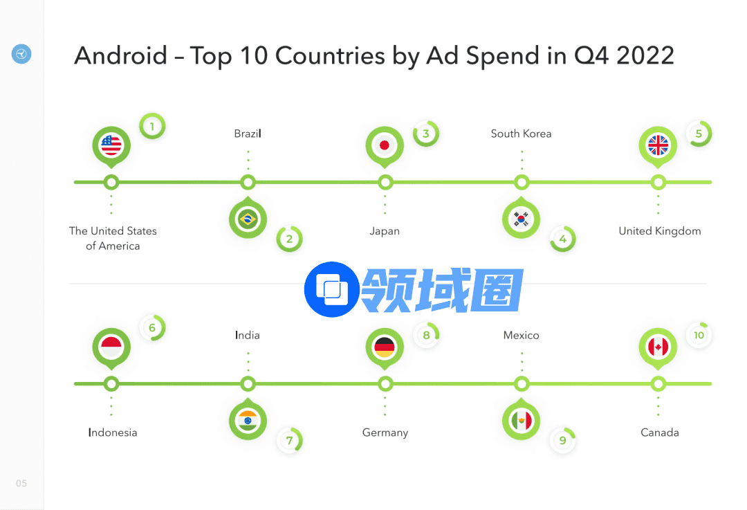 值得注意的是,在此版报告中,一直稳坐亚军宝座的日本首度失利,被巴西反超。至此,巴西成为 2022 年安卓端投放规模增势最猛的区域市场,增长潜力不容忽视。