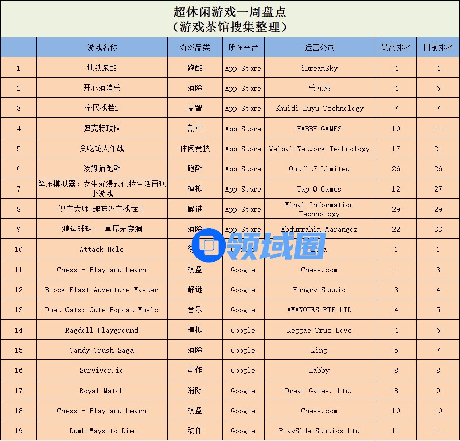 休闲小游戏:合成+消除热游频出,《美食大作战》稳坐TOP2