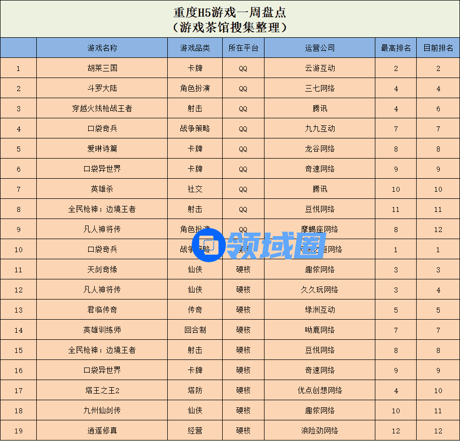 重度H5游戏:《胡莱三国》稳坐榜首,《英雄杀》重回TOP10