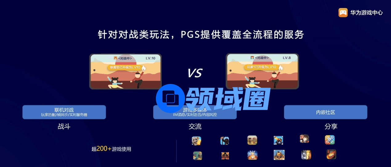 旨在帮助开发者更高效地完成更高质量对战玩法的开发,PGS为开发者提供了覆盖游戏从战斗到交流,再到分享的全流程服务,包括联机对战、游戏多媒体和内嵌社区,帮助开发者快速构建完整的PVP对战场景。