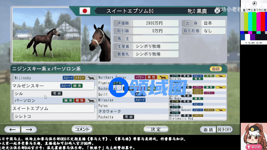 名马丸善斯基的孩子,个性、跑法特点以及性格都技能化与数值化(图源B站UP主 牧场小老板)