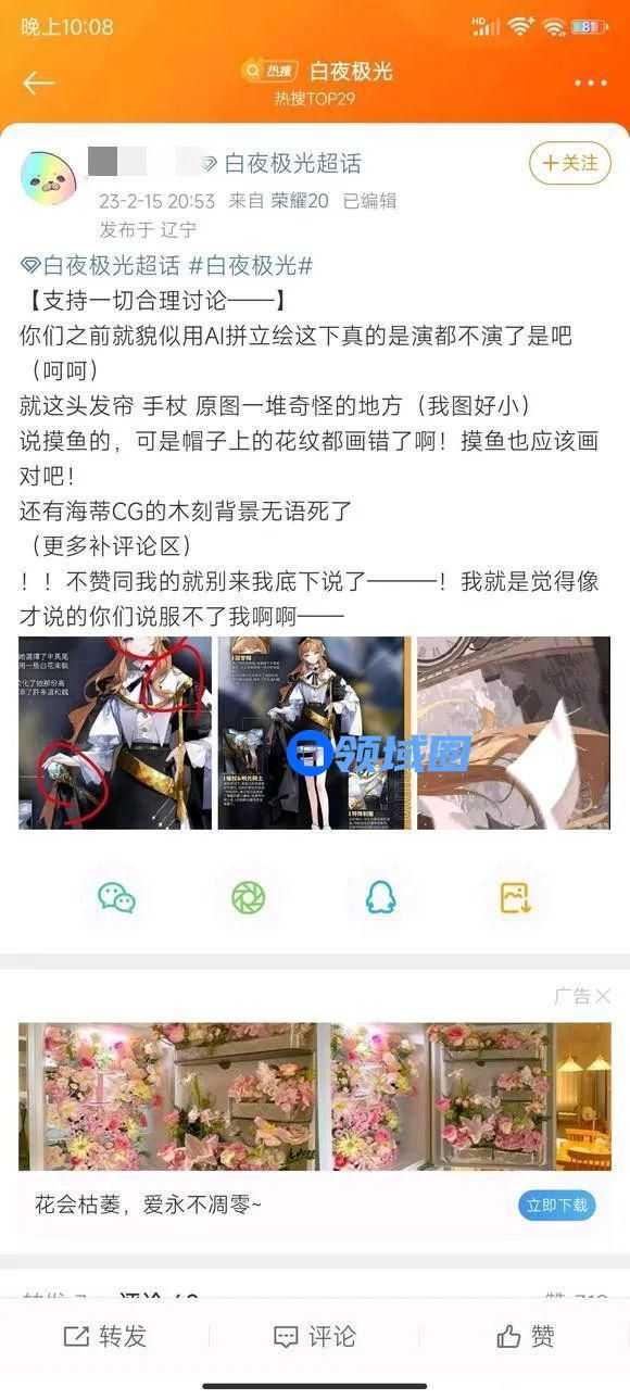 事情的起因是曾为《幻书启世录》供稿的知名画师“卜尔Q”昨天在社交平台发布了为二次元手游《白夜极光》的情人节贺图,而发布后立刻有网友指出这张贺图疑似出现了多个明显不合理的绘画错误,不少人怀疑“卜尔Q”在绘制这张贺图时使用了AI作画。