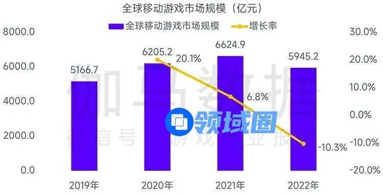 2022年全球移动游戏市场规模降至5945.2亿元,缩减10.3%