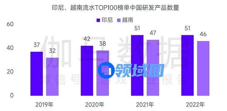 随着中国移动游戏企业在东南亚市场的不断开拓,中国研发产品数量占比也不断增加,当前两国移动游戏头部市场中,中国研发产品占比均在五成左右,中国产品成为了两国移动游戏市场的重要组成部分。