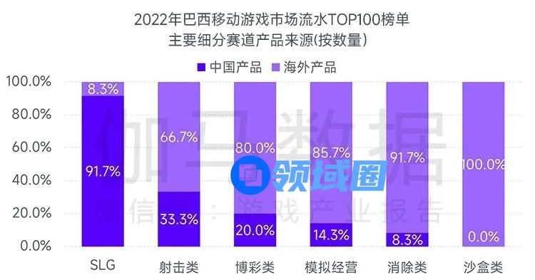 巴西作为拉美地区的头部移动游戏市场,在2022年维持了自身的增长。与东南亚地区不同,中国自研移动游戏产品在巴西移动游戏头部市场中表现并不突出,但在细分赛道下中国游戏企业取得了亮眼成绩。2022年进入巴西流水TOP100榜单的12款SLG产品中,有11款均由中国游戏企业研发。