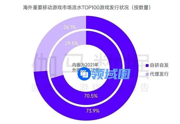 2022年海外主要移动游戏市场TOP100产品中自主发行产品占比进一步提升。一方面近年来全球大部分地区产品开发进度受阻,新游供给数量减少;另一方面,中小型游戏企业在资源与开发经验有限的情况下较难产出具备足够竞争力的产品以进入移动游戏头部榜单。
